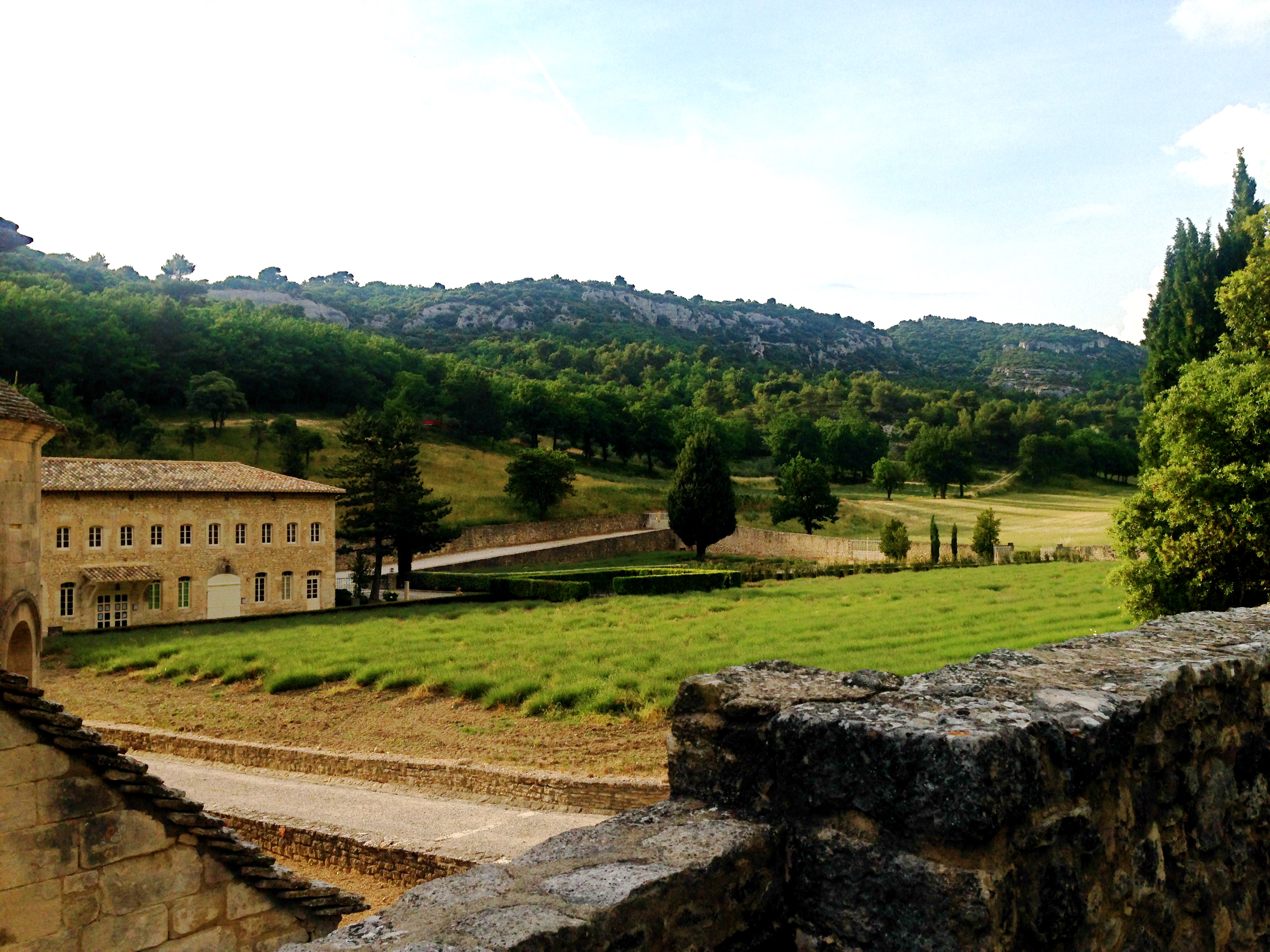 Unfortunately, most of the monastery (including the lavender gift shop it supposedly had) was closed by the time we had arrived around 5pm, so we had to make our own tour of the place around the grounds. We walked around the side gates and towards the back fields, peering up at the stone windows and imagining cloaked monks slowly shuffling through the halls clutching candlesticks, poring over books (we stubbornly ignored the signs of electric lighting on the outdoor staircases– I think we were more or less envisioning the monastery from “Ever After;” not completely inappropriate given the location).