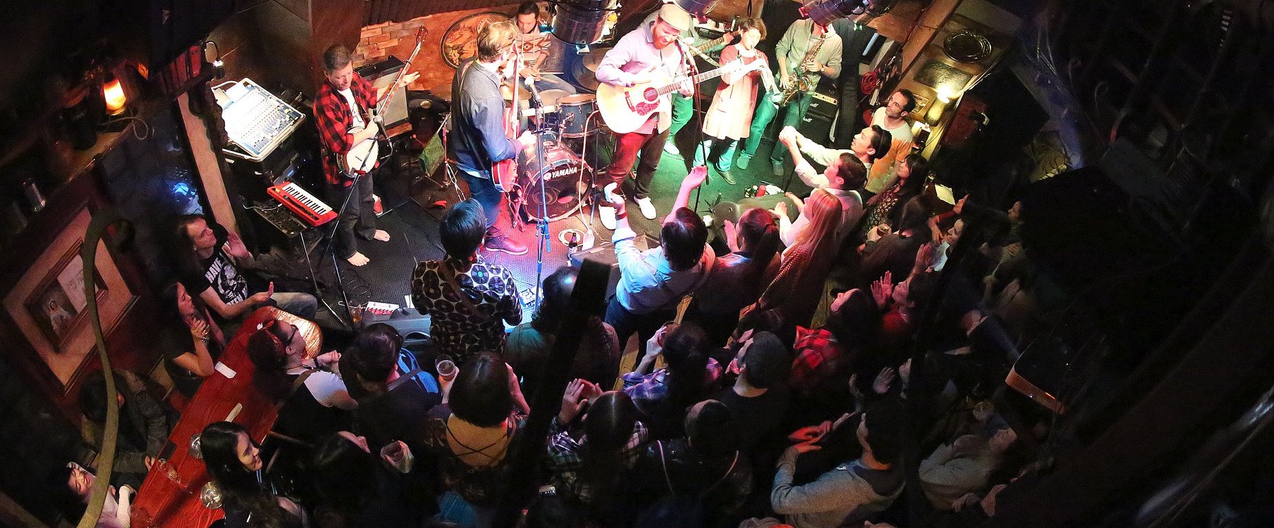 Last weekend I went to one of my friend’s gigs at a British live house in Ebisu called “What the Dickens.” The band is a massive 7-piece ensemble that only barely fits on the pub’s narrow stage. It’s kind of like a folksy ska band — the 7 pieces include: an electric guitar, an acoustic guitar, drums, a saxophone, a trumpet (though the sax and trumpeter switch off between those instruments and perfectly-coordinated shakers), a bass, and finally a banjo/mandolin player who always takes the stage barefoot, earning him the nickname “Johnny Barefoot” which is literally what everyone calls him. The band kind of dissolved last year when the electric guitar player — the band’s co-founder — left Japan. And even months later when they recruited a new guitarist it was tough for the other co-founder to carry on with the band without his best friend. Last weekend was their first return to “What the Dickens,” the same venue they had played their farewell show the year before. The pub staff, knowing how much the other co-founder would be missing his best friend at this gig, surprised him (and the rest of the gig attendees) with a life-size cut-out of the former bandmate, who had come to enjoy the show: